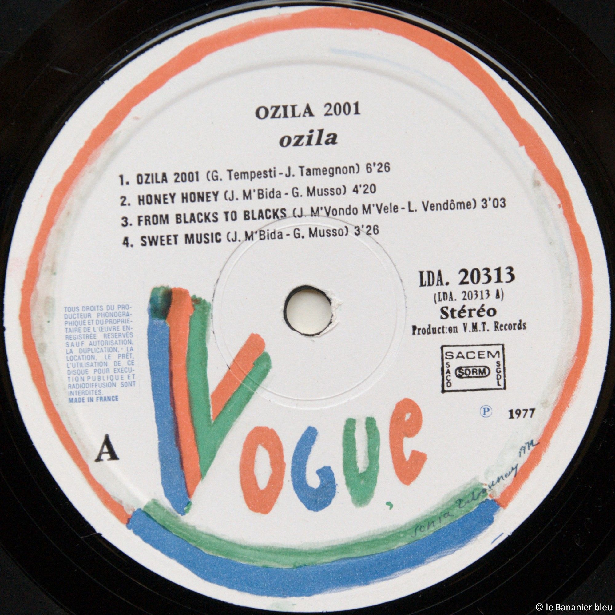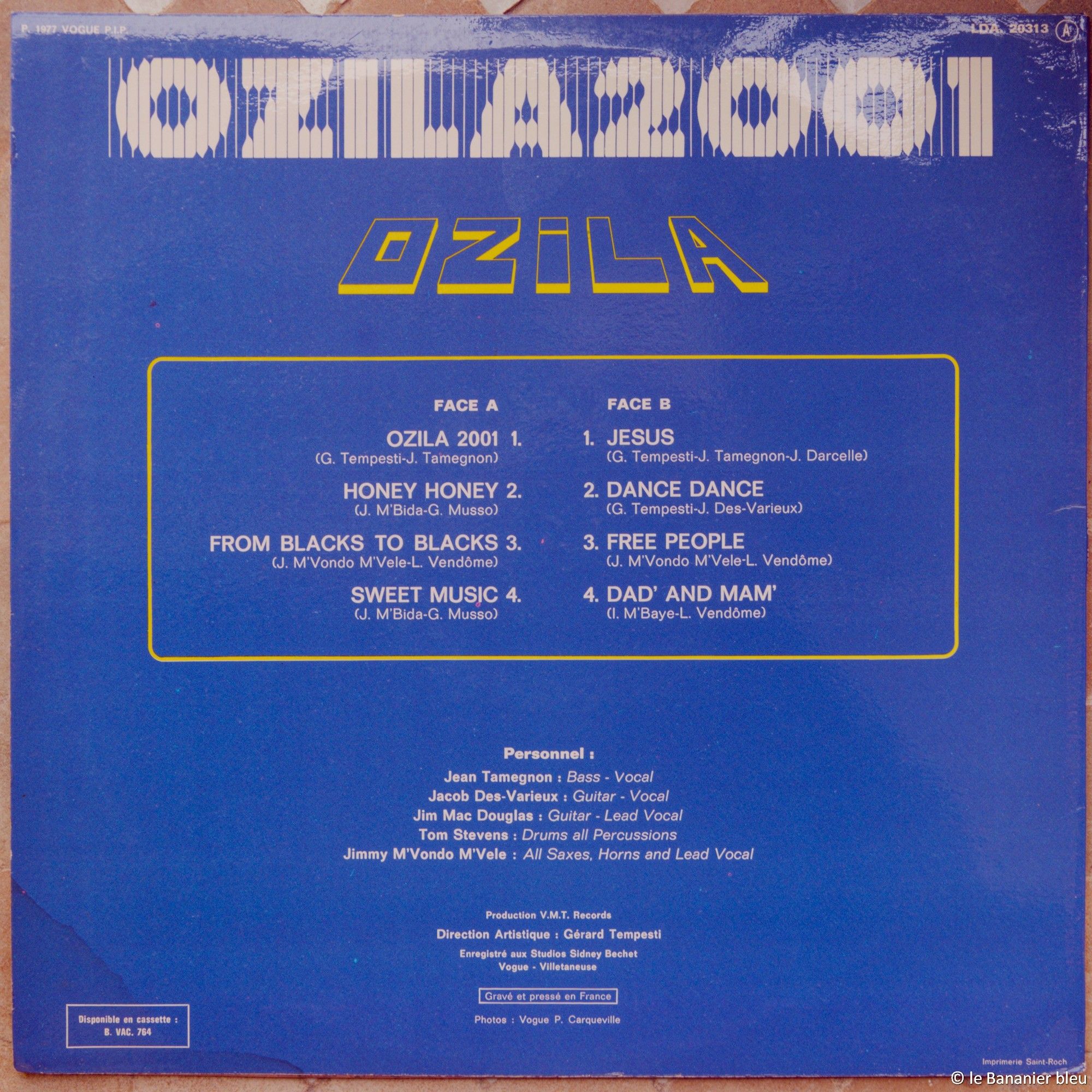 🇬🇳 🎷 🎸 🪩 🌍 En cette deuxième moitié des seventies, l’heure est aux fusions, en particulier entre les musiques tropicales et les courants musicaux du moment, rock, disco, jazz… C’est à la lettre ce que propose Ozila, groupe afro-caribéen formé par le guinéen Jean Tamegnon, dit John Ozila, avec ses collègues Jim Mac Douglas (oui, Douglas Mbida, c’est bien lui) et Jimmy Mvondo Mvélé, l’un des grands cuivres de référence de l’époque. Formé à Marseille, Ozila ne serait rien sans l’apport aussi d’un certain Jacob Des-Varieux qui fait ici l’une de ses premières apparitions sur disque. En 1977, Ozila 2001 est le seul et unique album du groupe, un concentré d’afro-rock et de disco qui n’a pas grand-chose à envier aux productions du genre venues d’outre atlantique. Le single reprend le morceau titre et Honey Honey en face B, imparables sur la piste de danse, mais il ne faut pas manquer Sweet Music, le disco Gospel Jesus ou encore le beat afro-infernal de Free People. Le groupe ne rencontrera malheureusement pas le succès et s’en tiendra là. Ceci dit, plusieurs de ses membres ont rapidement fait partie par la suite de projets devenus cultes, à commencer par Kassav’ bien sûr.